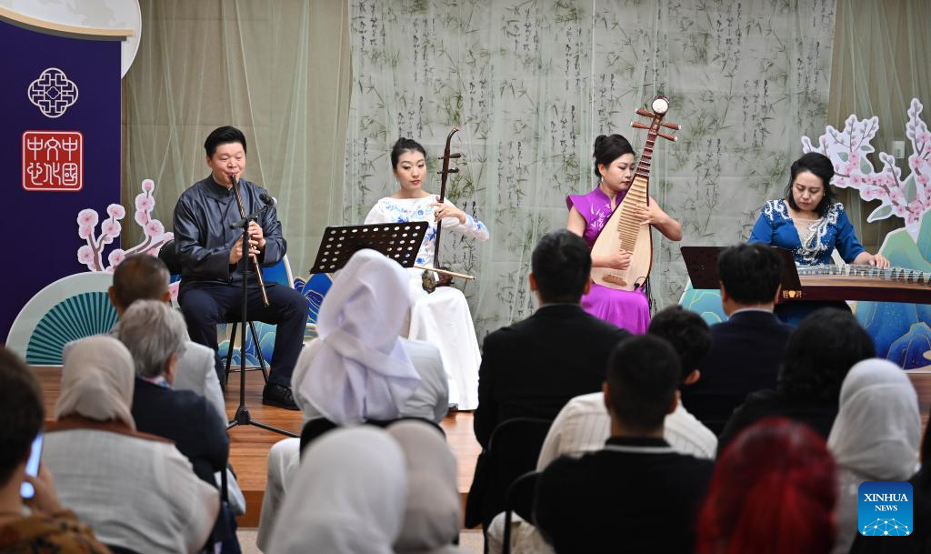 Chinese musicians perform at the China Cultural Center in Hawalli Province, Kuwait, on Nov. 24, 2025. The China Cultural Center in Kuwait hosted a Chamber Concert of Chinese Classical Music event under the theme "Traditional Rhythm & New Vibe" as part of its Chinese Culture Series -- Night of Chinese Language. (Photo by Asad/Xinhua)