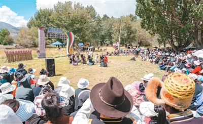 Local residents watch a performance at a "Lingka" festival in Qiongjie county, Shannan, southwest China's Xizang Autonomous Region. (Xinhua/Tenzin Nyida)