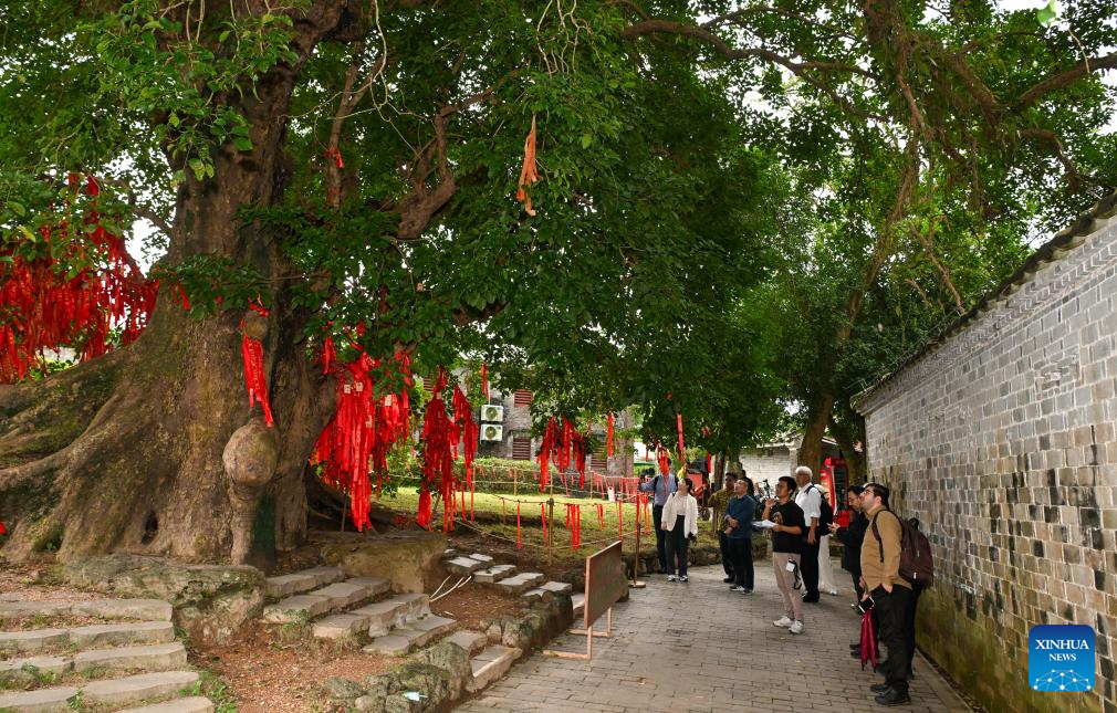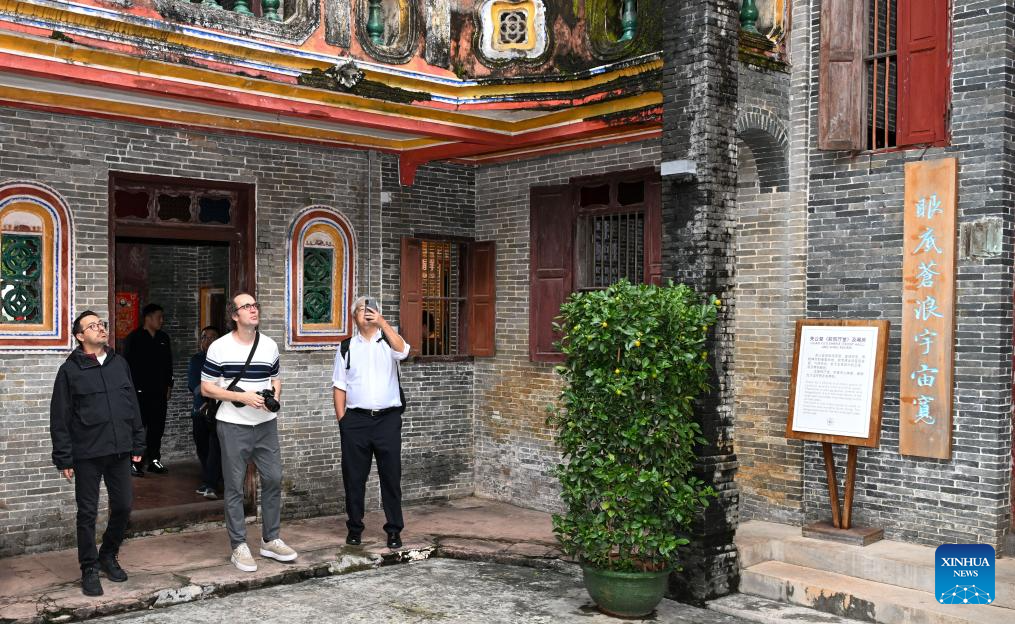 Foreign guests attending the 57th Executive Board Meeting of the Organization of Asia-Pacific News Agencies (OANA) visit the Cai Family Residence, a representation of Hainan's overseas Chinese residential architecture, in Boao, a coastal town in Qionghai, south China's Hainan Province, Dec. 4, 2025. Foreign guests attending the 57th Executive Board Meeting of the OANA visited several places in Qionghai to learn about its rich cultural history and the latest progress of Hainan Free Trade Port in fields such as healthcare and tourism. (Xinhua/Yang Guanyu)