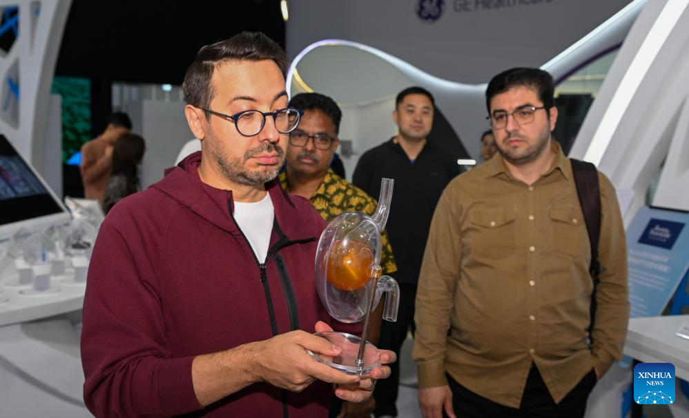 Foreign guests attending the 57th Executive Board Meeting of the Organization of Asia-Pacific News Agencies (OANA) visit an international innovation medicine exhibition in Boao, a coastal town in Qionghai, south China's Hainan Province, Dec. 4, 2025. Foreign guests attending the 57th Executive Board Meeting of the OANA visited several places in Qionghai to learn about its rich cultural history and the latest progress of Hainan Free Trade Port in fields such as healthcare and tourism. (Xinhua/Yang Guanyu)