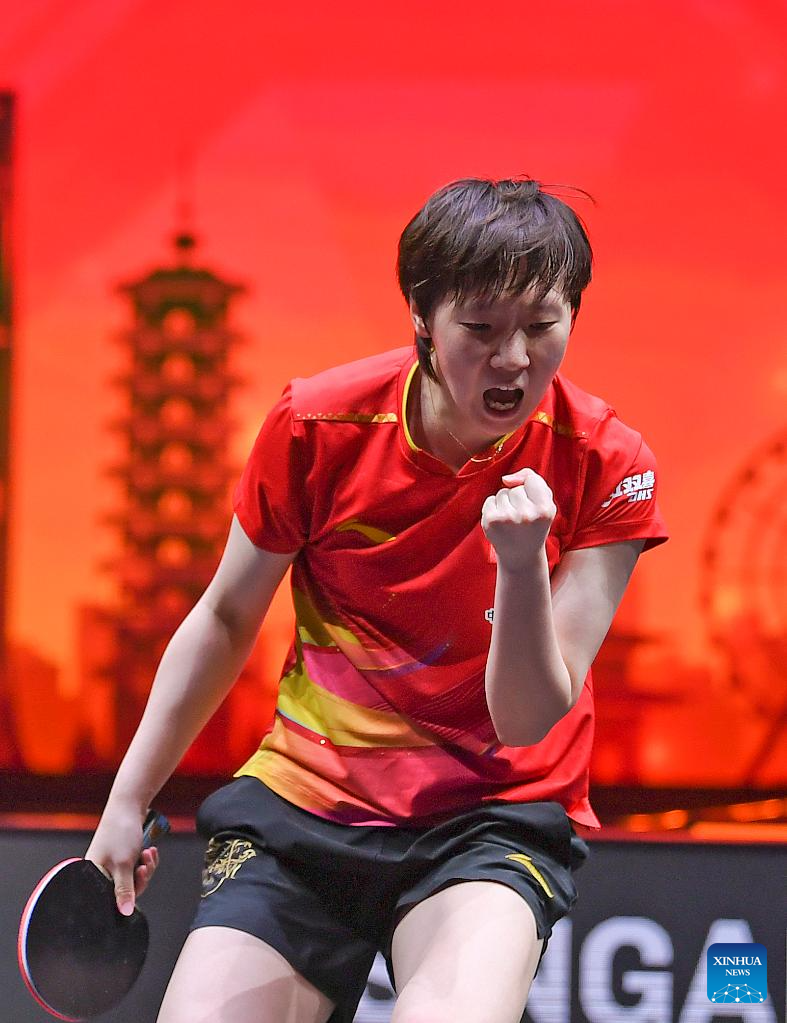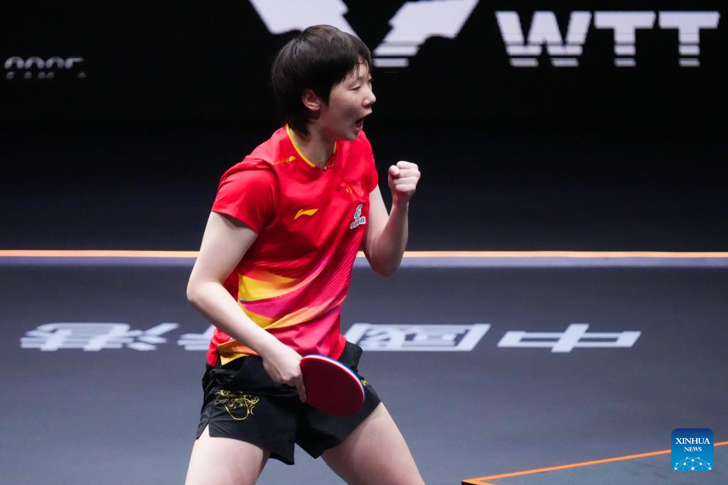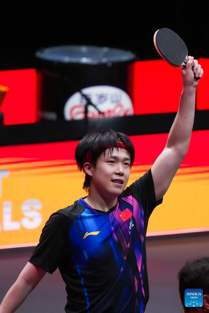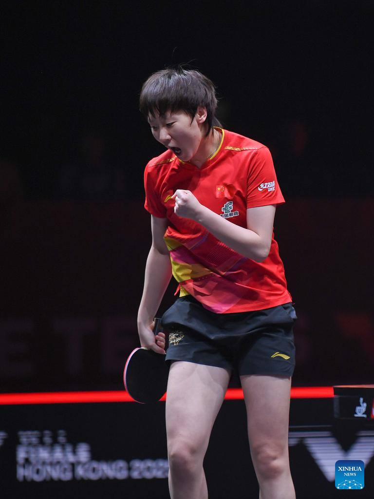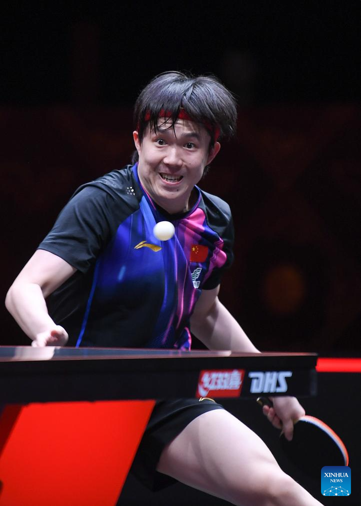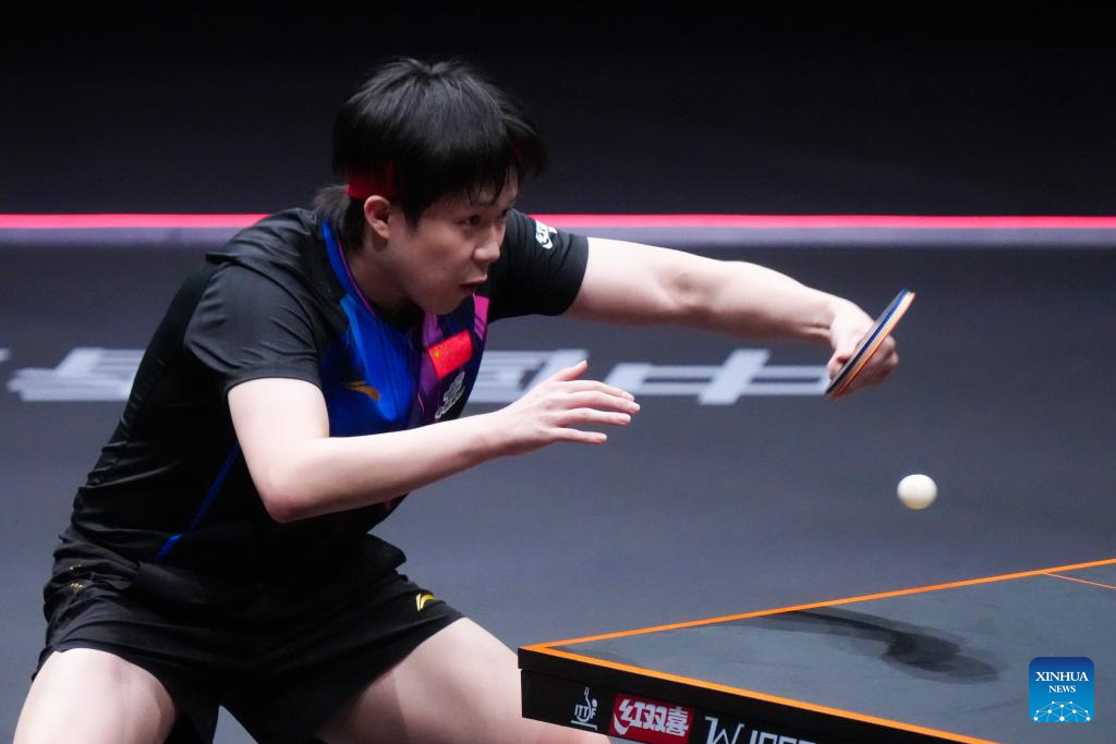 HONG KONG, Dec. 10 (Xinhua) -- China's Wang Chuqin and Wang Manyu clinched victories in the singles round of 16 as the World Table Tennis (WTT) Finals kicked off here on Wednesday.