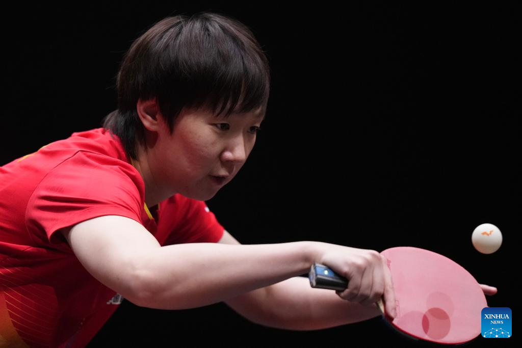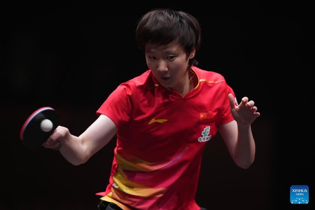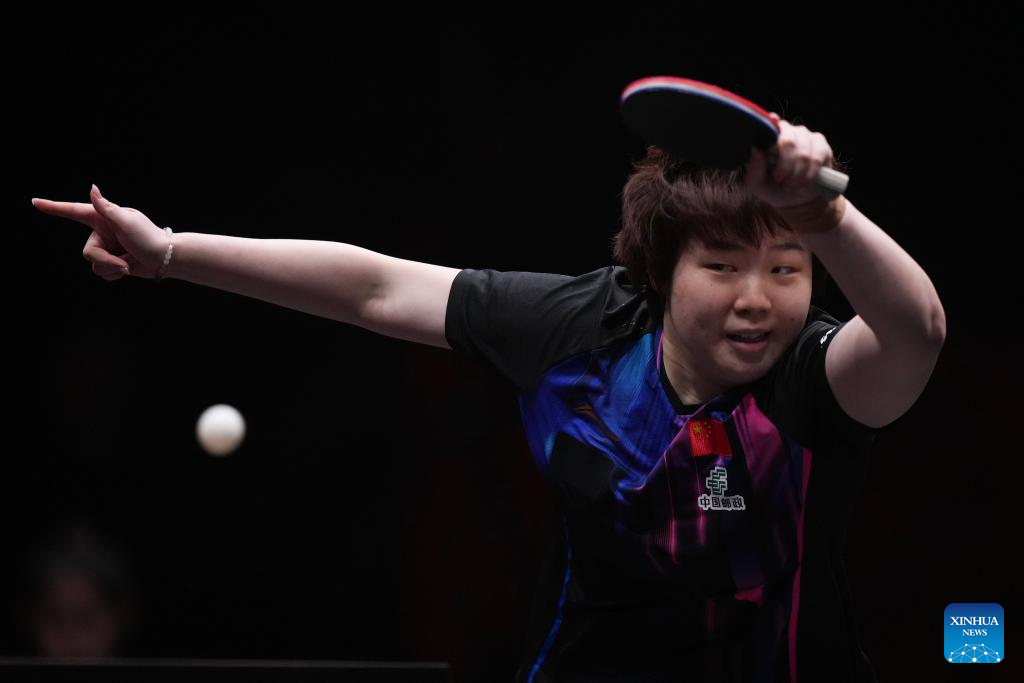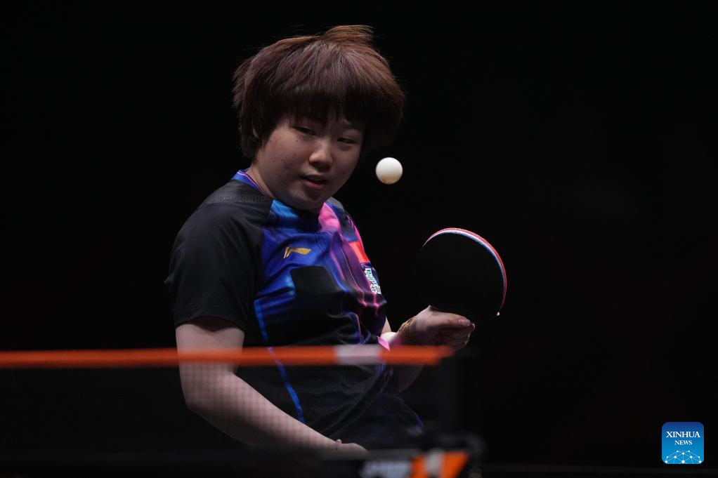 Kuai Man competes during the women's singles final between Wang Manyu of China and Kuai Man of China at the WTT Finals Hong Kong 2025 in Hong Kong, south China, Dec. 14, 2025. (Xinhua/Lui Siu Wai)